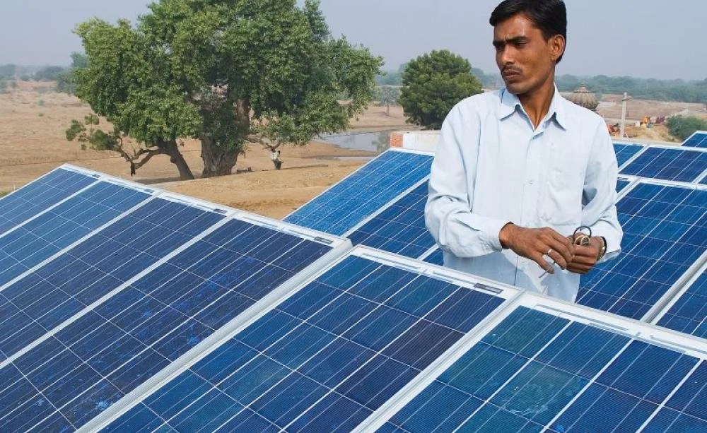 Photo: Close is best ... a barefoot solar engineer cleaning PV panels in village near Ajmer, Rajasthan, India. Credit: Knut-Erik Helle via Flickr and The Ecologist (CC BY-NC-ND).